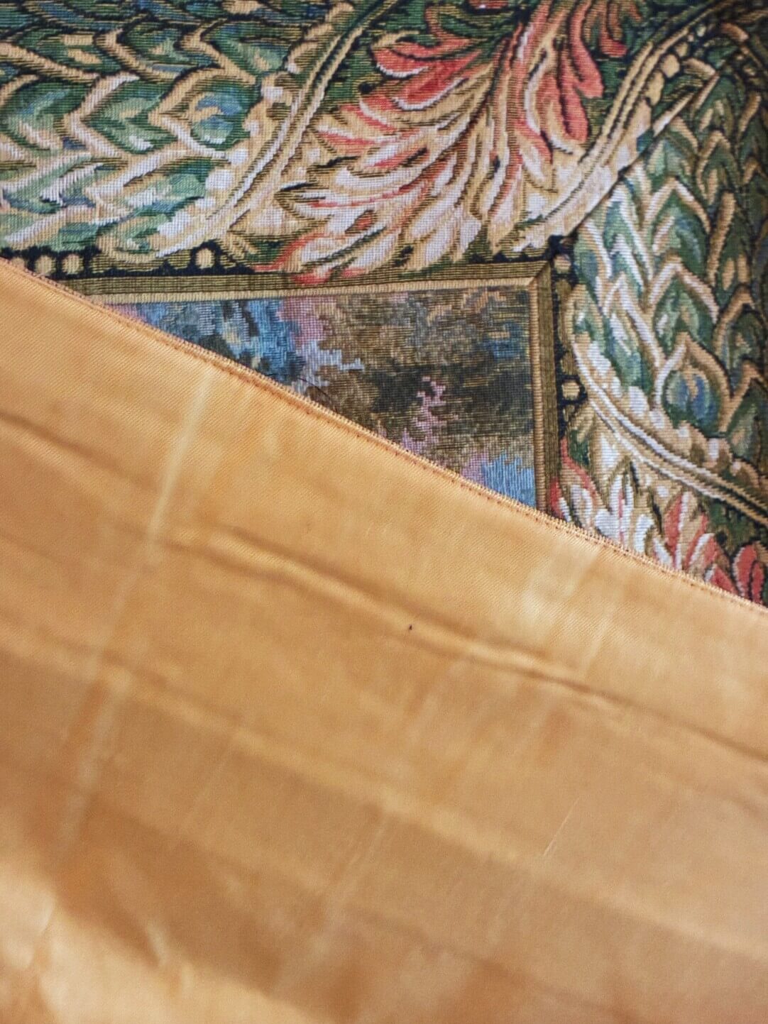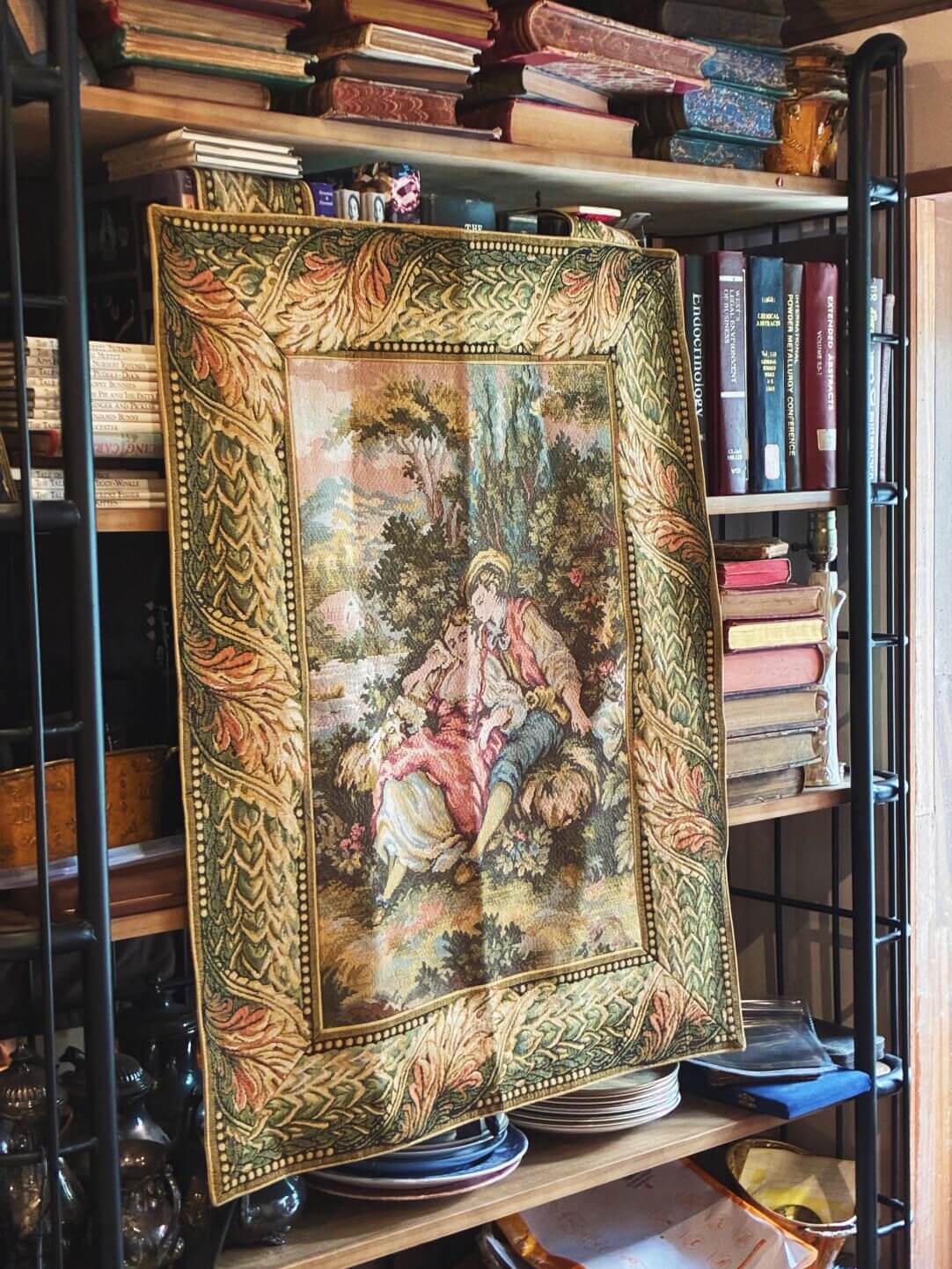 Owning this tapestry means possessing a genuine piece of history—a textile artwork that has witnessed decades, perhaps centuries, and carries the patina and character that only time can bestow. Each thread tells a story, each color has aged gracefully, making this an irreplaceable addition to any collection.
