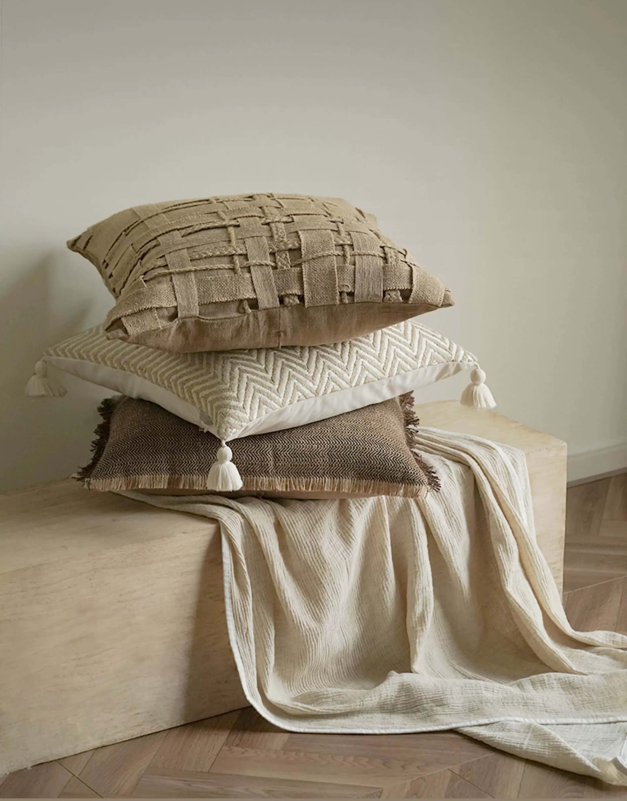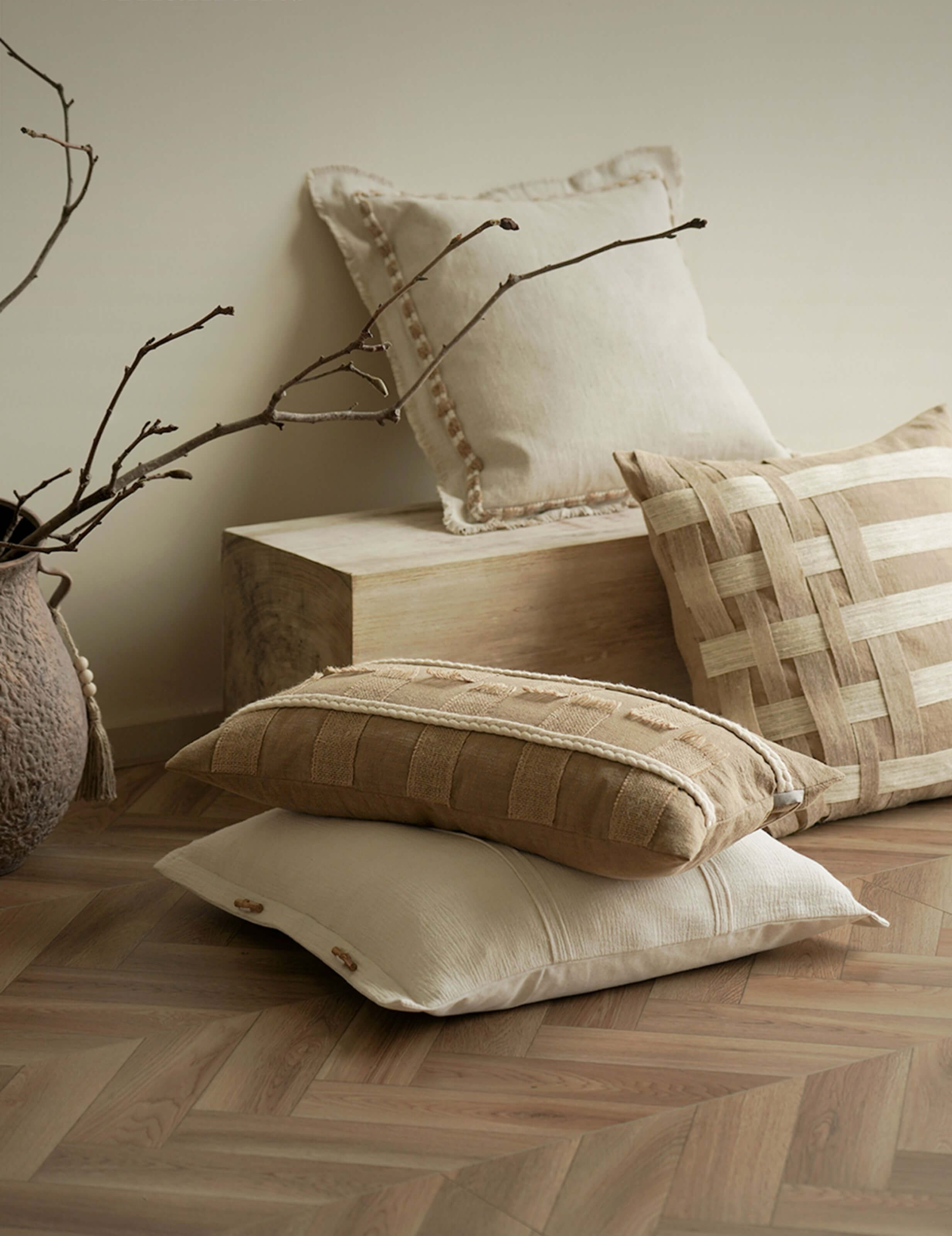 Elevate your living space with these handwoven throw pillows, crafted from a luxurious cotton-linen blend that marries comfort with timeless... Lesen Sie mehr