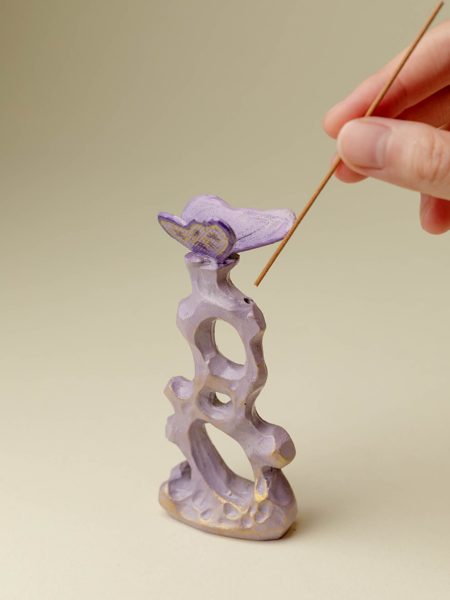 Japanese Lucky Butterfly Ceramic Incense Holder