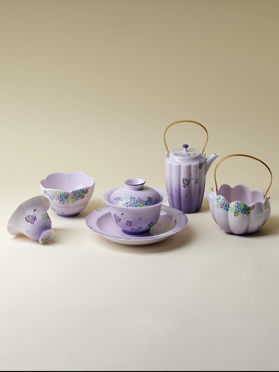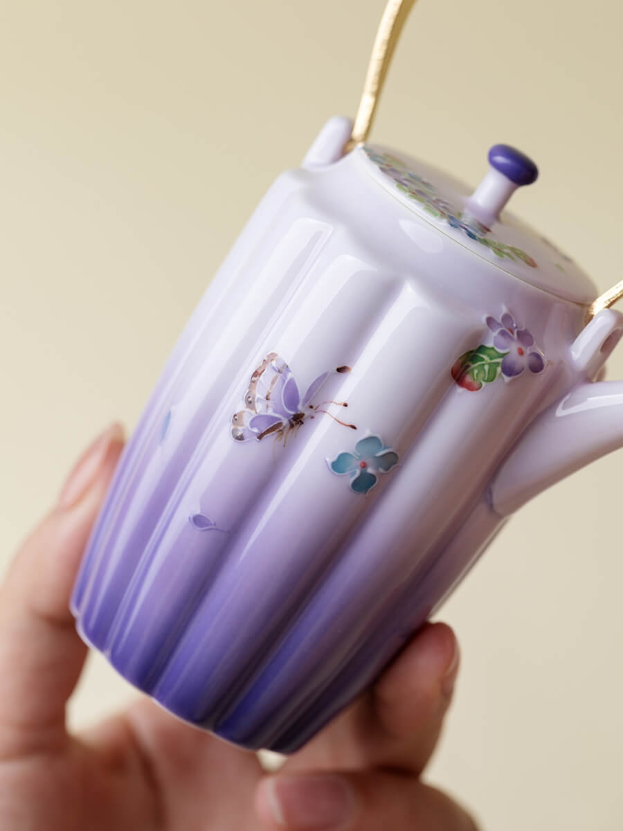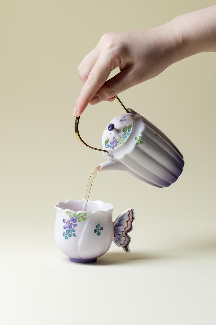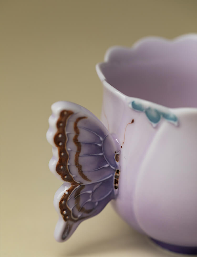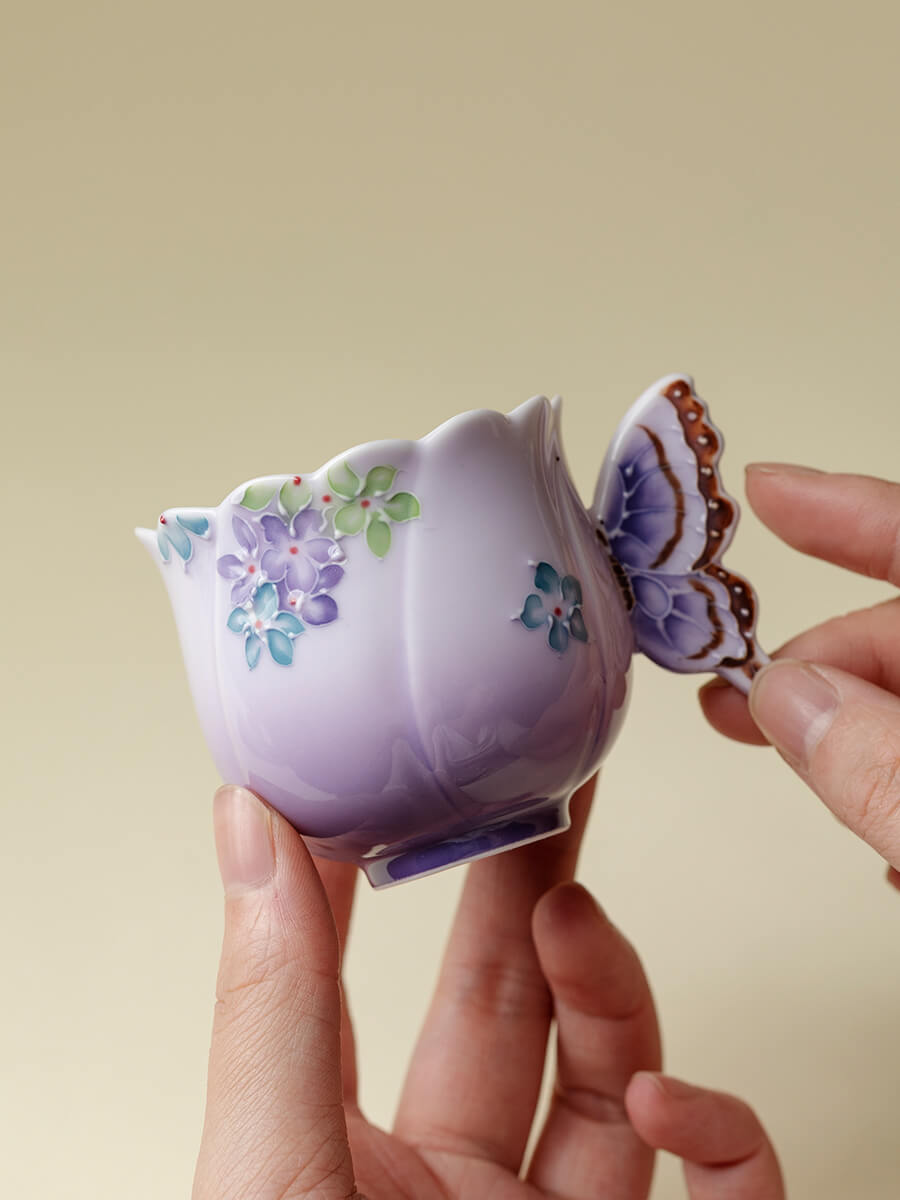 Japanese Lucky Butterfly Ceramic Tea Cup & Teapot Set