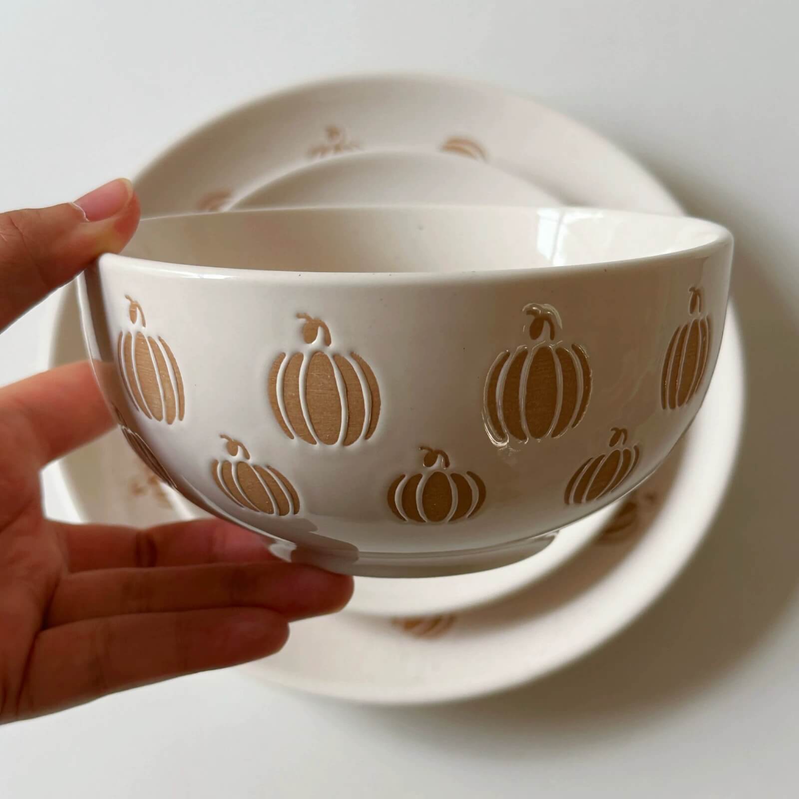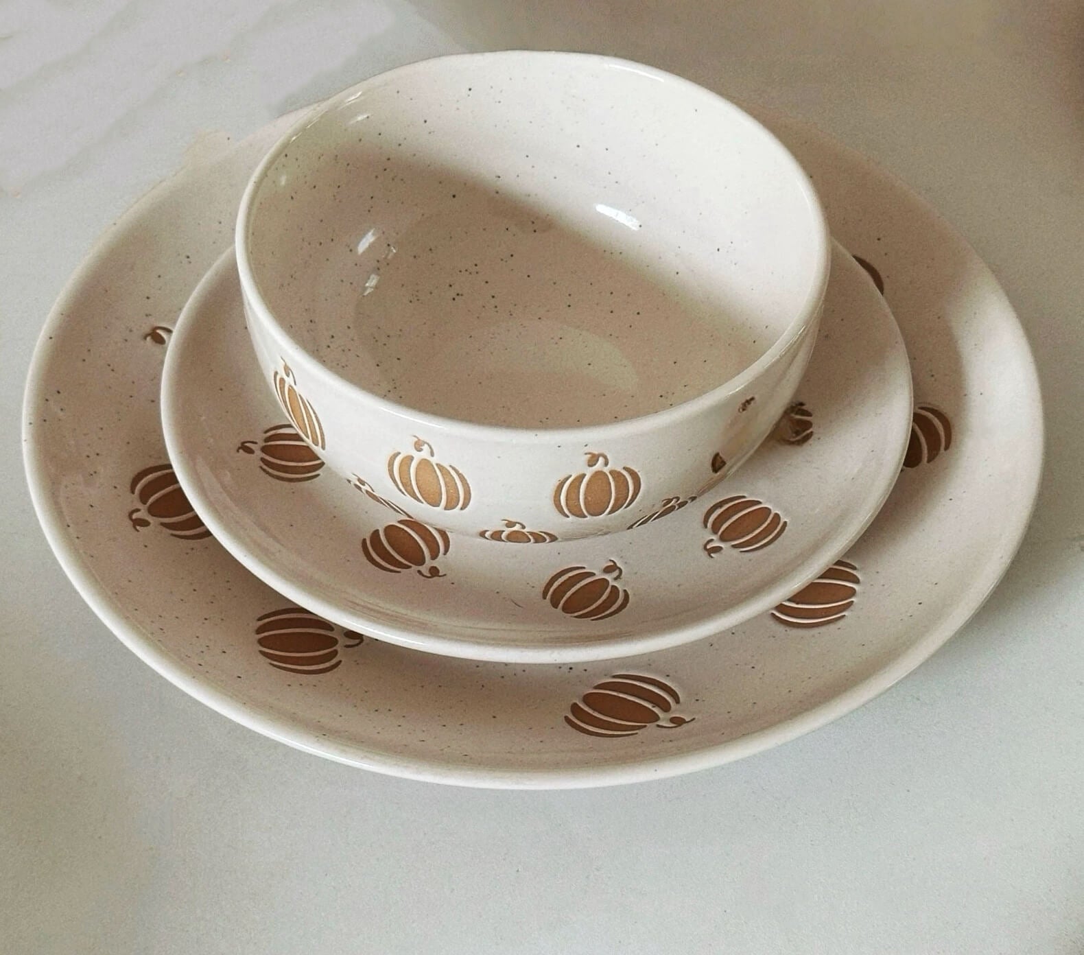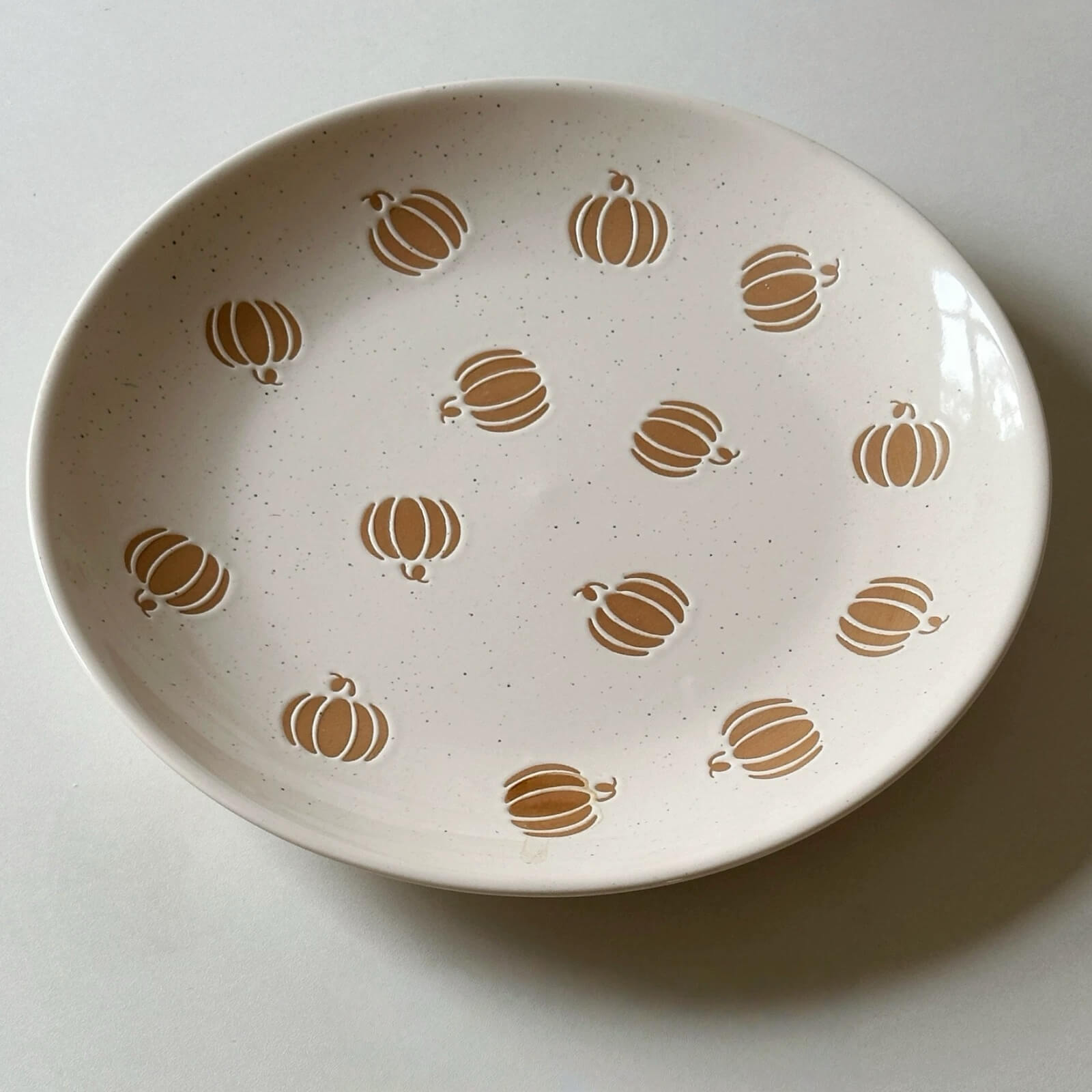 This daring Pumpkin Hand-painted Ceramic Plate Set brings a bold Halloween spirit to your table. Crafted from durable ceramic and featuring vibrant pumpkin designs, these plates are perfect for festive gatherings. Microwave-safe for convenience, this set combines style and practicality to elevate your seasonal celebrations.