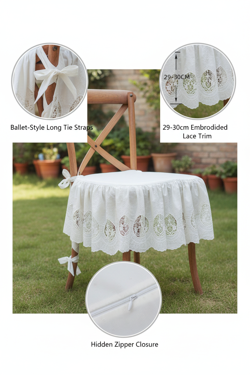 - Elegant Embroidered Lace Trim - Features exquisite embroidered lace edging with a generous 29-30cm drop that creates a romantic, vintage-inspired silhouette and adds graceful movement to your seating
