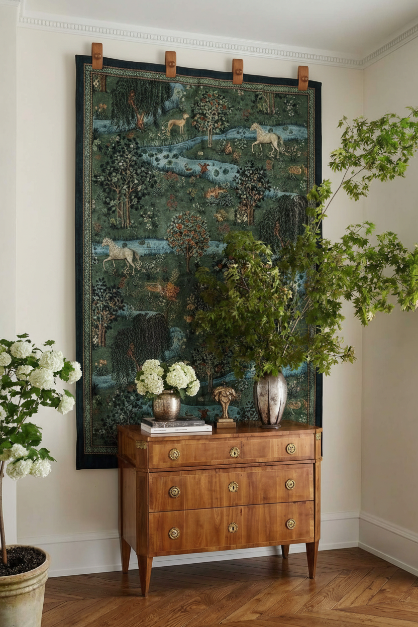 All tapestries feature a dual-design hanging system with grommeted edges for easy installation.