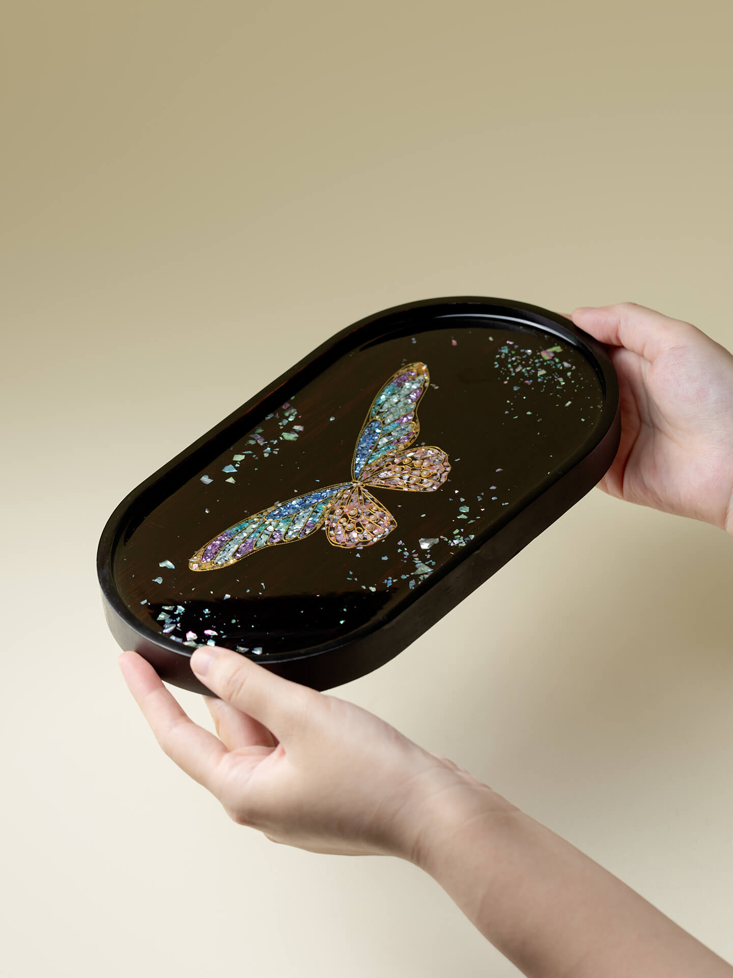 Elevate your entryway with the Lucky Butterfly Painted Key Tray, a refined accessory designed to keep your keys organized gracefully. Featuring an elegant butterfly motif delicately hand-painted for a timeless appeal, this tray blends artistry with practicality. Crafted to complement sophisticated interiors, it offers a stylish spot to rest essentials, reducing clutter while enhancing decor. A subtle yet charming detail that adds both function and beauty to your daily routine.