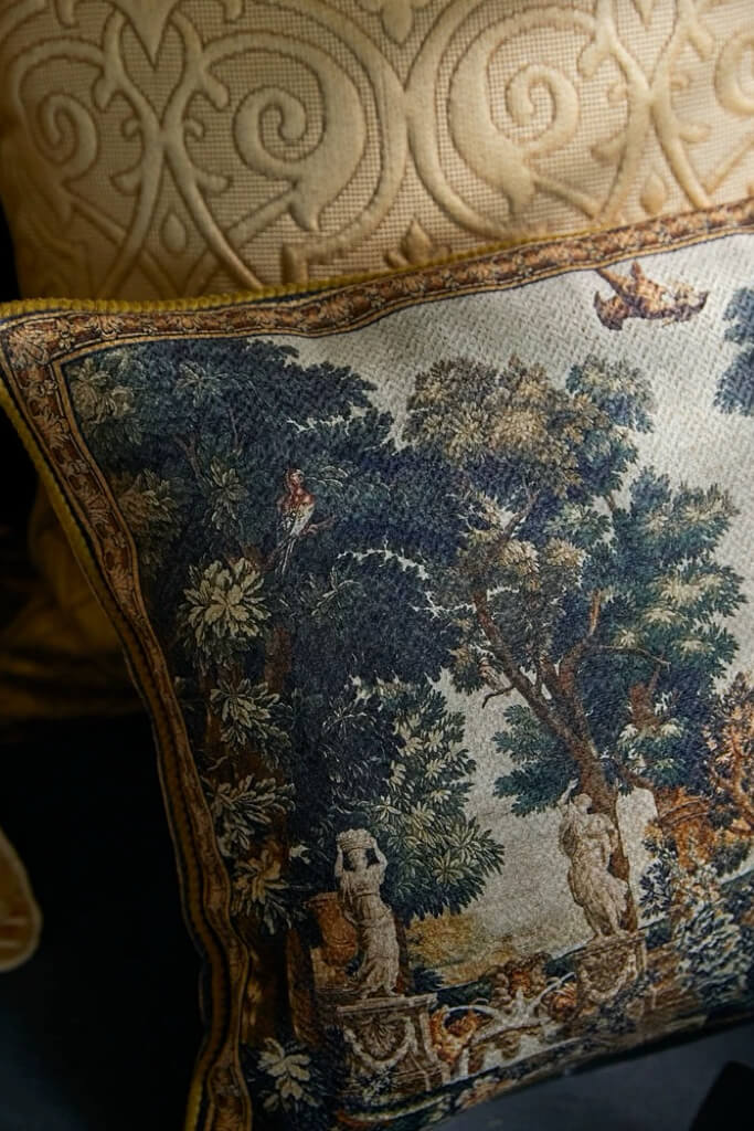 • Premium chenille fabric with museum-quality tapestry design