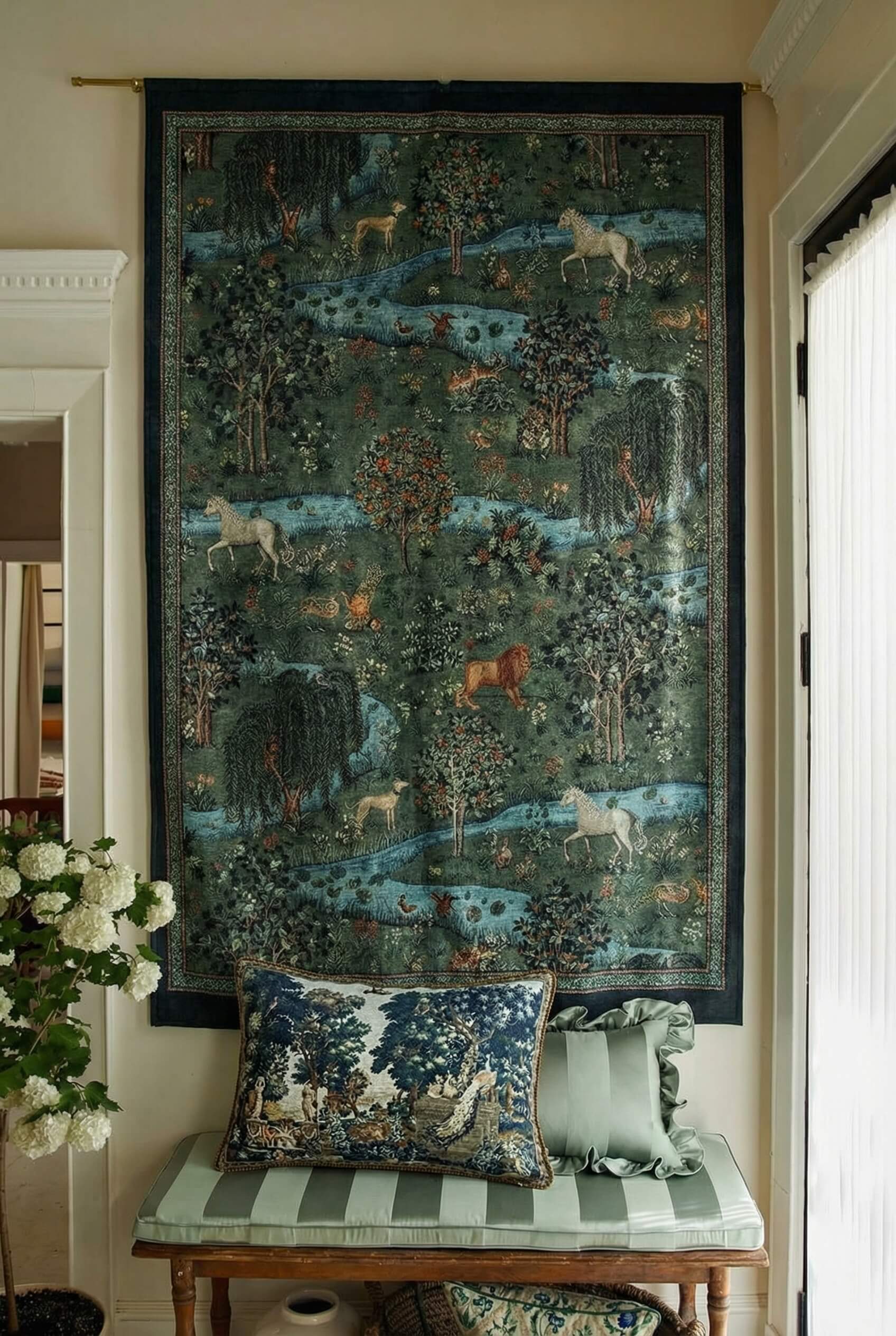 • Verdure Style - Derived from the French word "verdure" (green foliage), this style focused on depicting lush landscapes, garden scenes, and wildlife, highly favored by the aristocracy