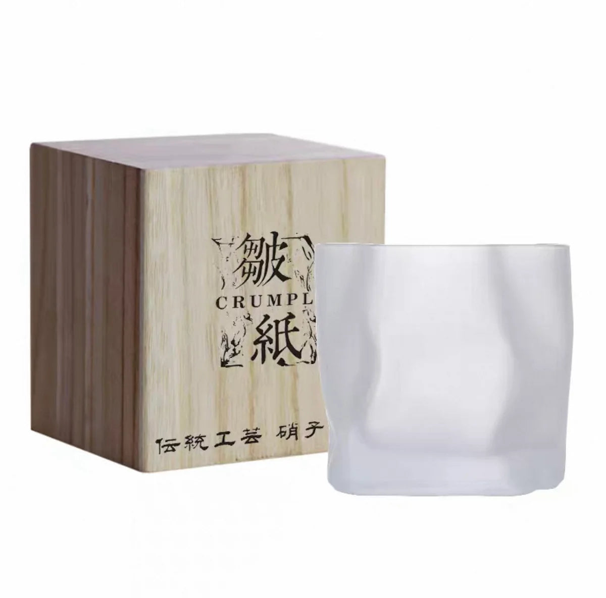 This isn't merely a whisky glass; it's a sculptural work of art for your hand. Each piece is meticulously handcrafted by skilled artisans, showcasing the distinctive "crumple" pattern that gives its body a captivating, organically wrinkled or creased appearance. This unique design, combined with the precise and intricate cuts characteristic of traditional Edo Kiriko, creates a visually striking dialogue between modern aesthetic and timeless technique.