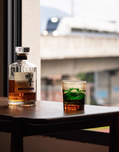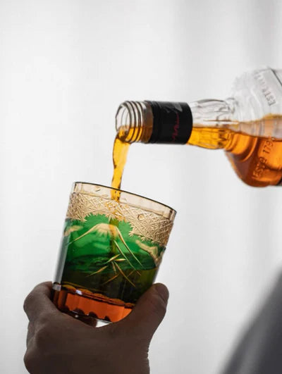 • Hand-Cut Mount Fuji Design: This glass features a stunning green hue, reminiscent of the lush slopes of Mount Fuji, meticulously hand-cut with intricate patterns that evoke the mountain's majestic form. The interplay of light and color creates a breathtaking visual experience.