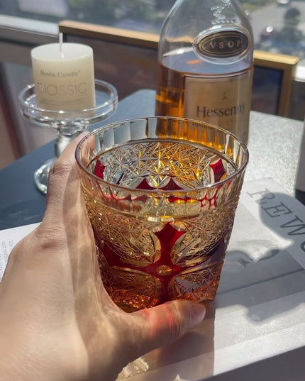 This Edo Kiriko whiskey glass is a masterpiece of Japanese traditional craftsmanship. It features a stunning, handcrafted "cross" pattern, a perfect fusion of classical beauty and modern design, making it an ideal choice for a special gift or personal collection.