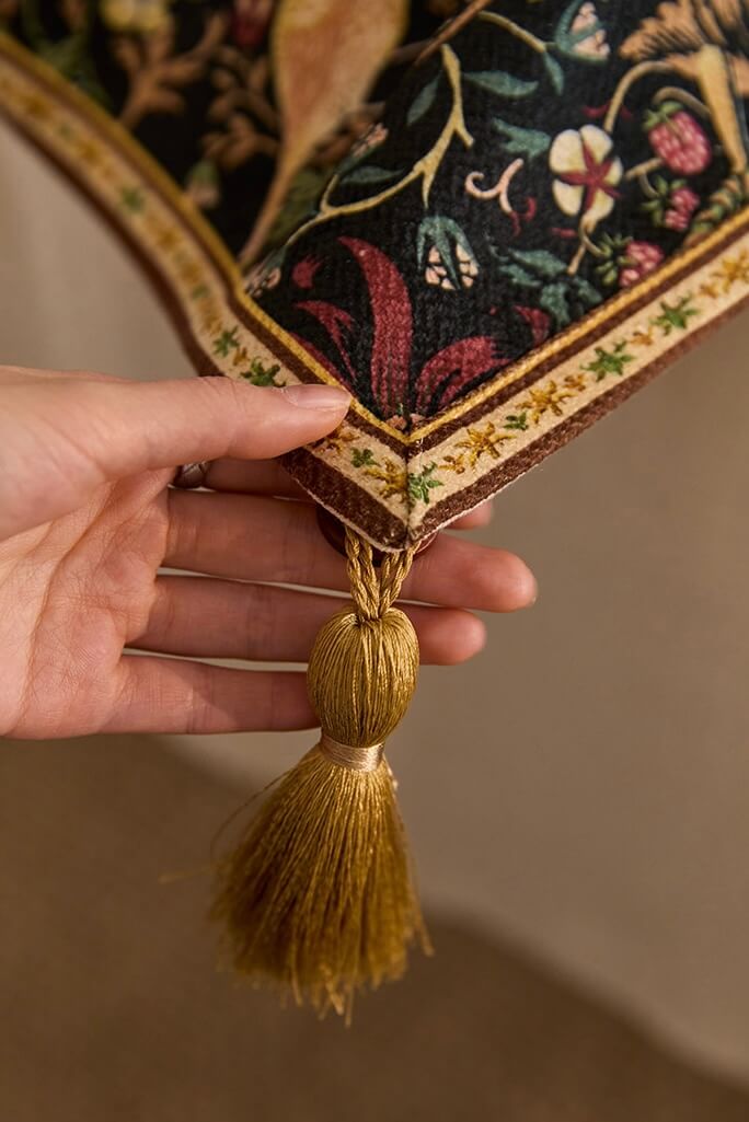 • 🌿 Fringed Finishing Touch:Hand-finished fringe edges add movement and vintage charm. The fringe detail is a nod to traditional textile craftsmanship, completing the Arts and Crafts aesthetic with authentic period character.