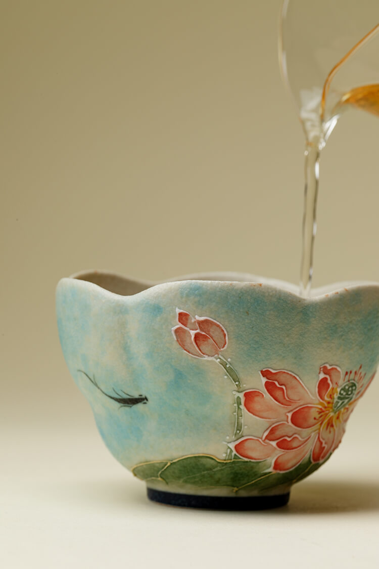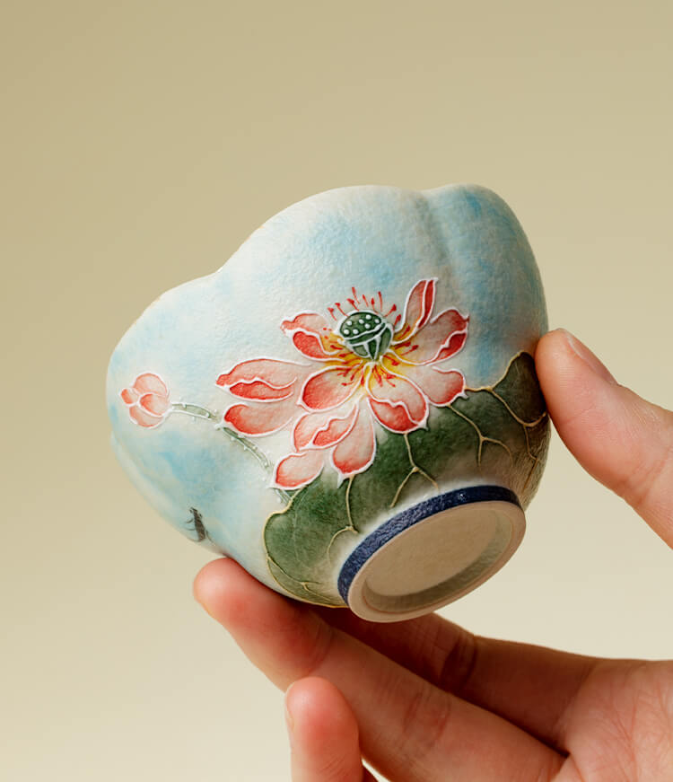 - Artisan Hand-Painting: Each cup is individually hand-painted by skilled artisans, showcasing delicate lotus blossoms and playful koi fish in a harmonious dance across the porcelain surface