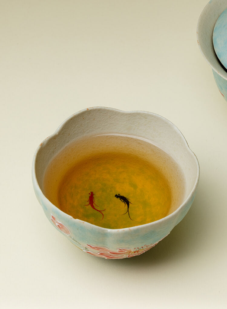 Hand-Painted Lotus Koi Ceramic Tea Cup -Prosperity & Perseverance