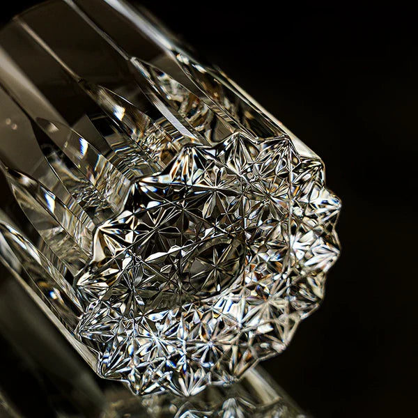 Each glass is a testament to the unparalleled skill of master artisans, meticulously handcrafted to perfection. What sets this edition apart is its captivating "Multi-Color" brilliance, creating a truly dazzling effect as light dances across its surface. The intricate design features precision-cut, sparkling diamond-shaped patterns that are etched into the glass, reflecting and refracting light in a mesmerizing display of hues. This harmonious blend of traditional cutting techniques and vibrant color imbues each glass with a unique and elegant appearance.