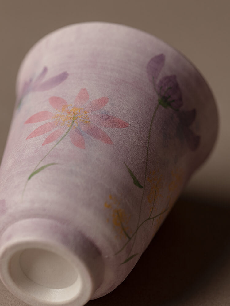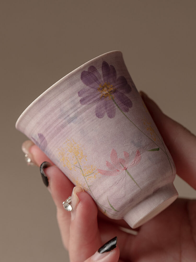 Japanese Hand-Painted Ceramic Floral Mug & Teacup