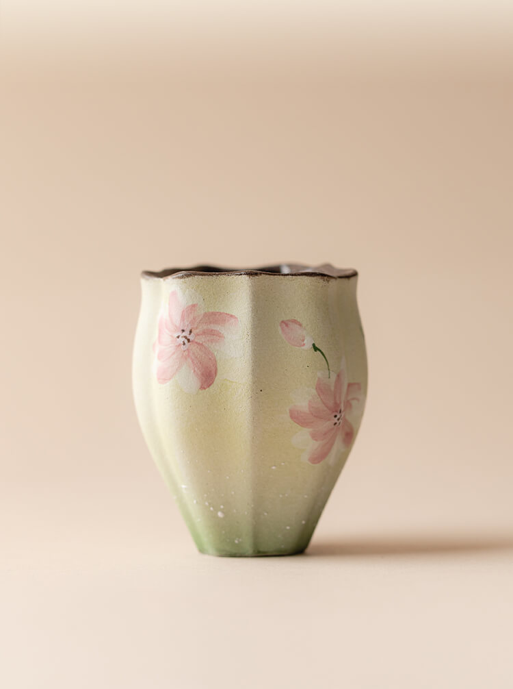 Sip with a smile from this charming 70ml ceramic cup, adorned with delicate hand-painted cherry blossoms that bring a touch... Read more