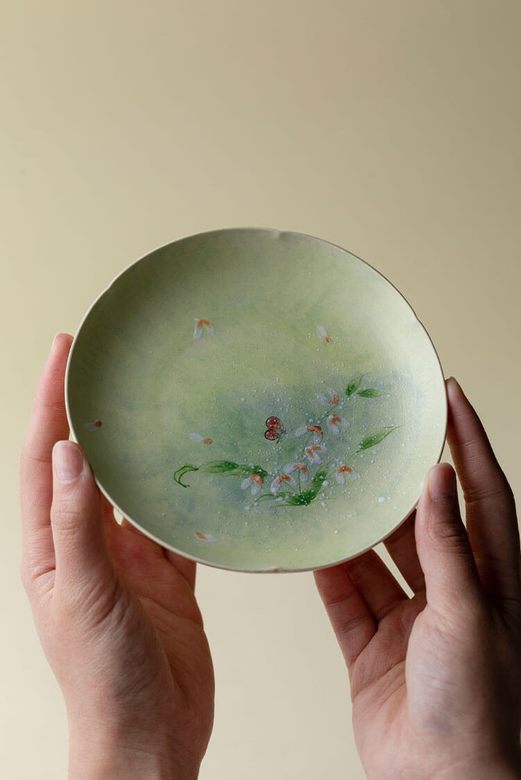 Japanese Wabi-Sabi Style Hand-Painted Garden Ceramic Dinner Plate