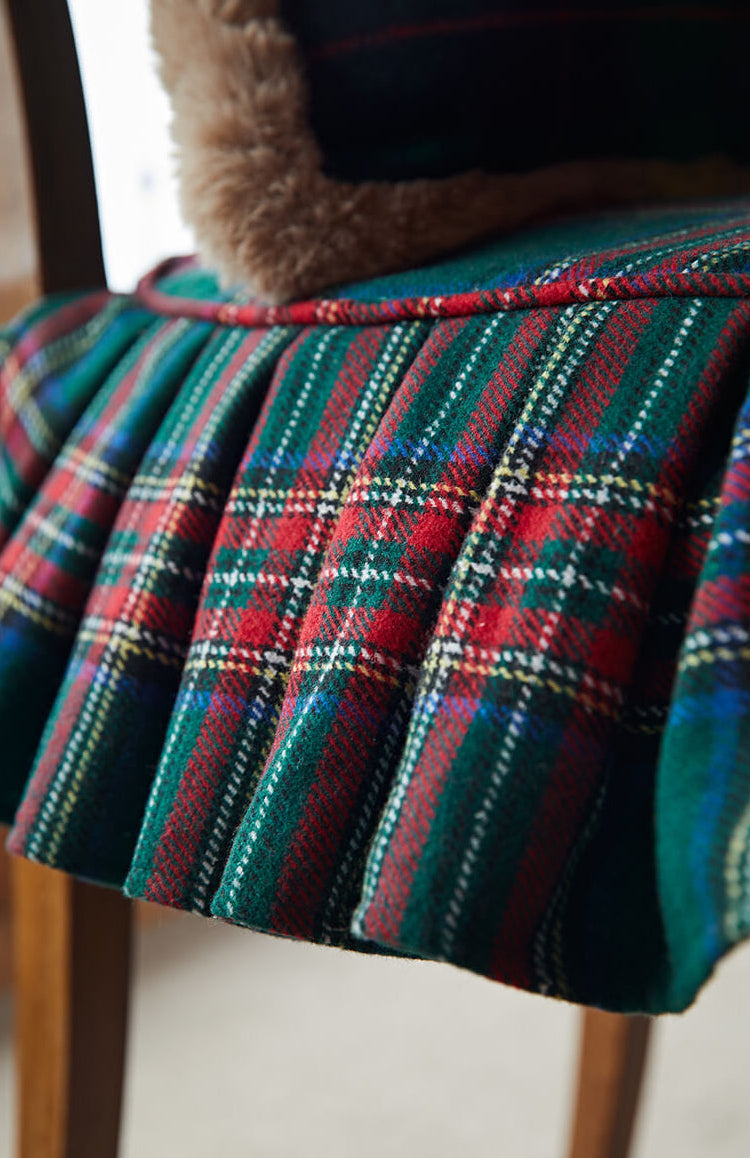 Vintage Ruffled Red Green Plaid Cotton Chair Cushion & Memory Foam