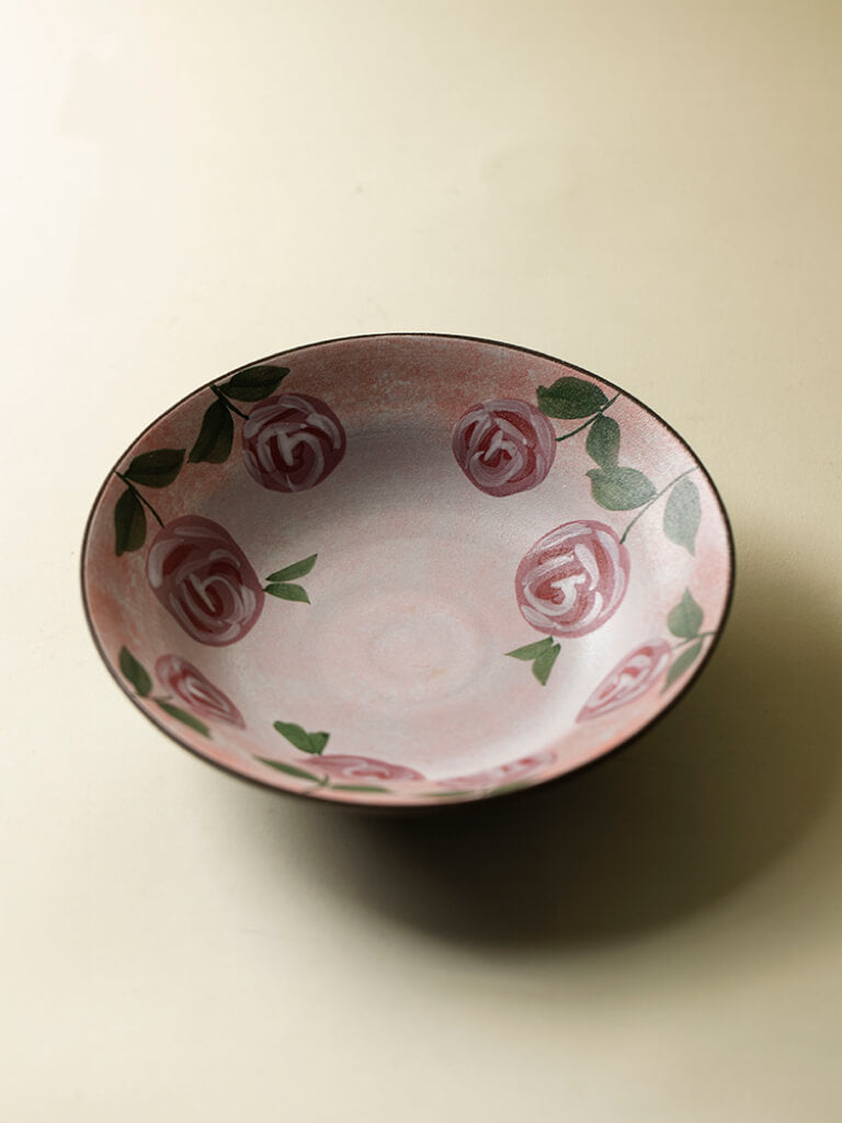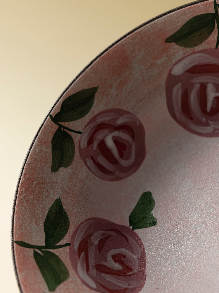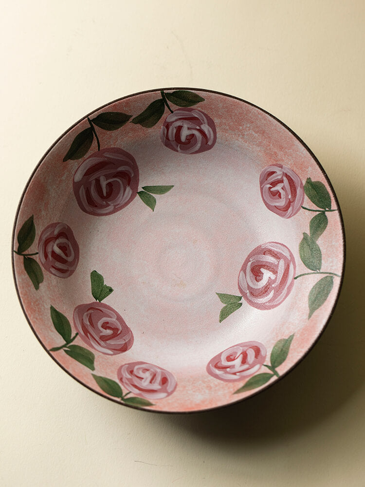 Wabi-Sabi Style Hand-Painted Rose Ceramic Dinner Plate Set